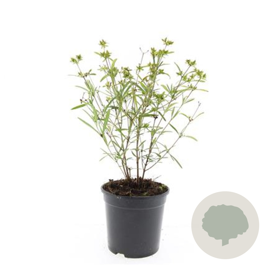 | Toelichting | Hertshooi 'Gemo' is een compacte vaste plant met heldergele bloemen en groen blad. Bloeiend van juni tot augustus en geschikt voor zon en halfschaduw op zand- of neutrale grond. Perfect voor borders en rotstuinen. |