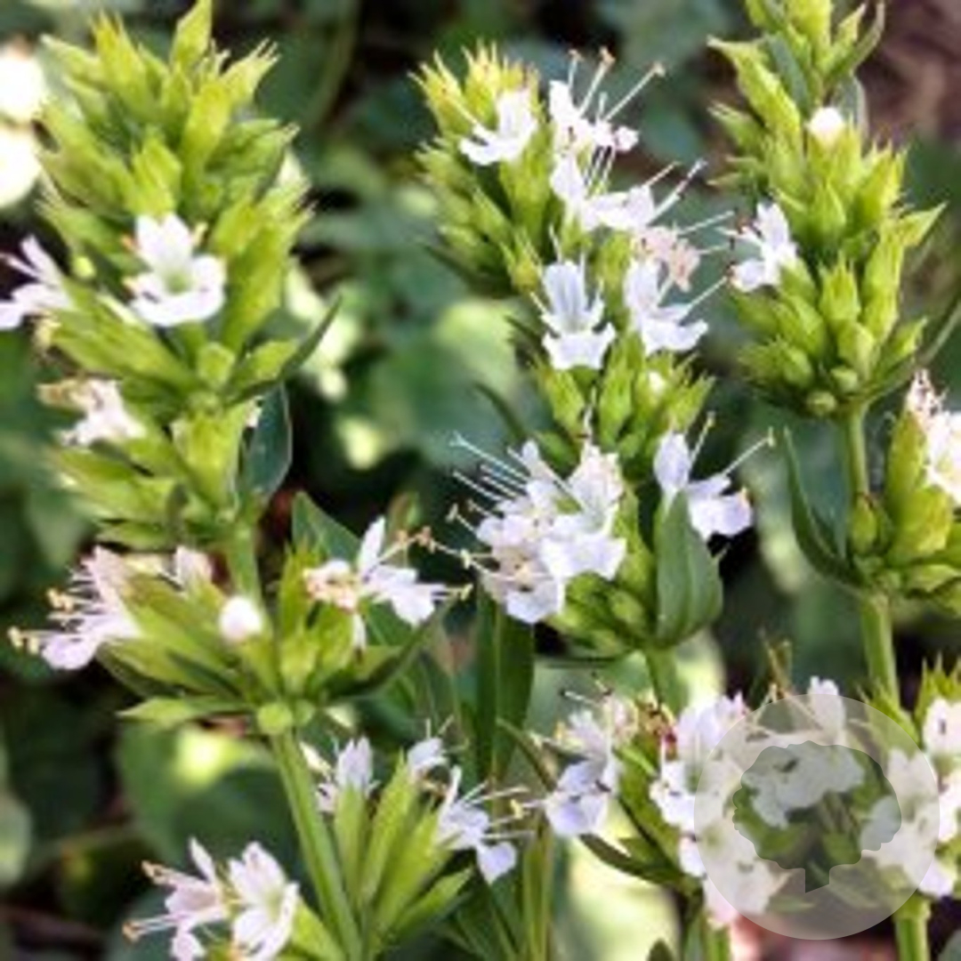 | Toelichting | Hyssop (Hyssopus officinalis 'Albus') is een aromatische kruidenplant met witte bloemen en groen blad. Deze plant bloeit van juli tot september en gedijt het beste in de volle zon op lichte klei, zure of humusrijke grond. Perfect voor een mediterrane kruidentuin! |