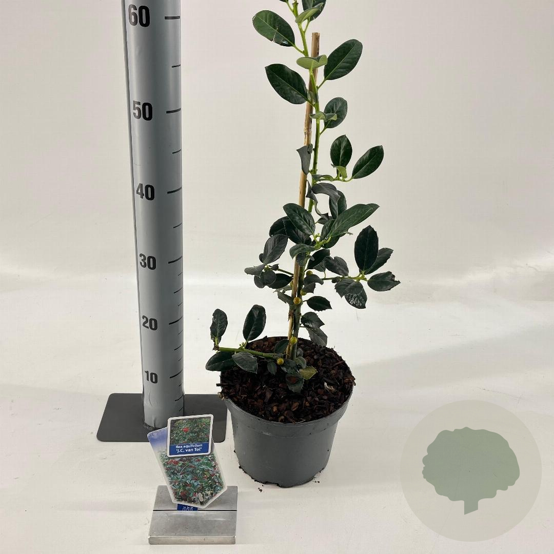 | Toelichting | De Hulst (Ilex aq. 'J.C. van Tol') is een wintergroene heester met donkergroene bladeren en groen-witte bloemen in mei-juni. Deze hulstsoort wordt ongeveer 200 cm hoog en gedijt goed in zon en halfschaduw op zandgrond, lichte klei of neutrale grond. |
