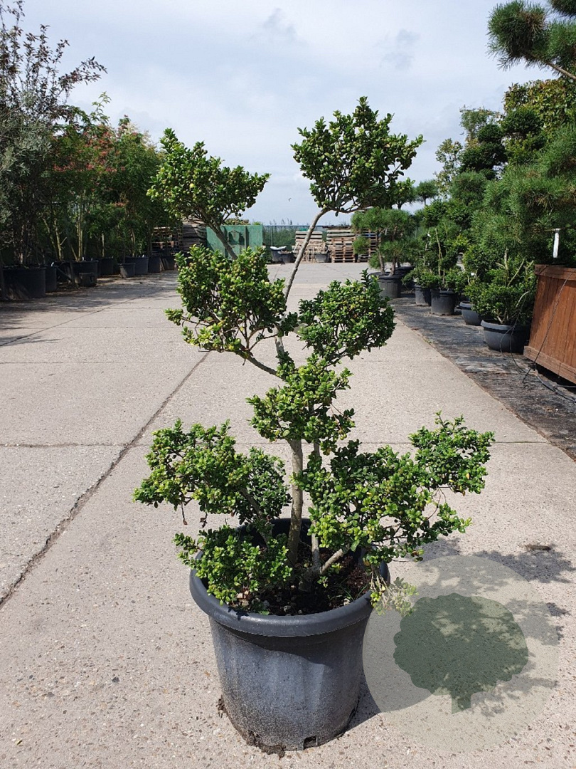 Toelichting | De Japanse hulst, Ilex crenata, is een mooie groenblijvende struik met donkergroene bladeren en witte bloemen in mei-juni. Deze hulstsoort gedijt goed in zon en halfschaduw op zandgrond, lichte klei of neutrale grond. |