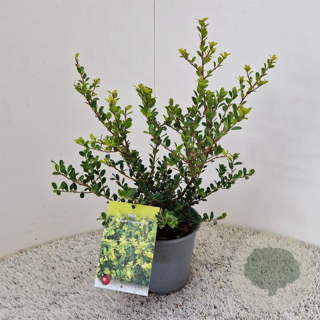 | Toelichting | De Japanse hulst 'Green Hedge' is een compacte struik met donkergroene bladeren en witte bloemen in mei - juni. Perfect voor zon en halfschaduw op zandgrond, lichte klei of neutrale grond. Bereikt een hoogte van 150 cm en heeft een stikstofbehoefte van 10 - 20g. |
