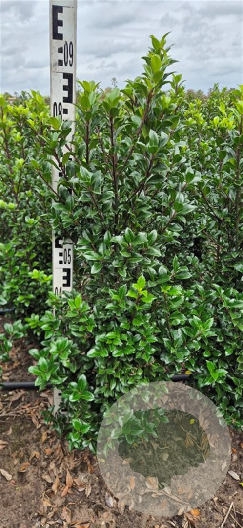 | Toelichting | De Hulst (Ilex meserv. 'Heckenstar') is een prachtige groenblijvende heester met donkergroene bladeren en witte bloemen in mei - juni. Deze hulstsoort gedijt goed in zonnige tot halfschaduwrijke omgevingen op zand- of neutrale grond. |
