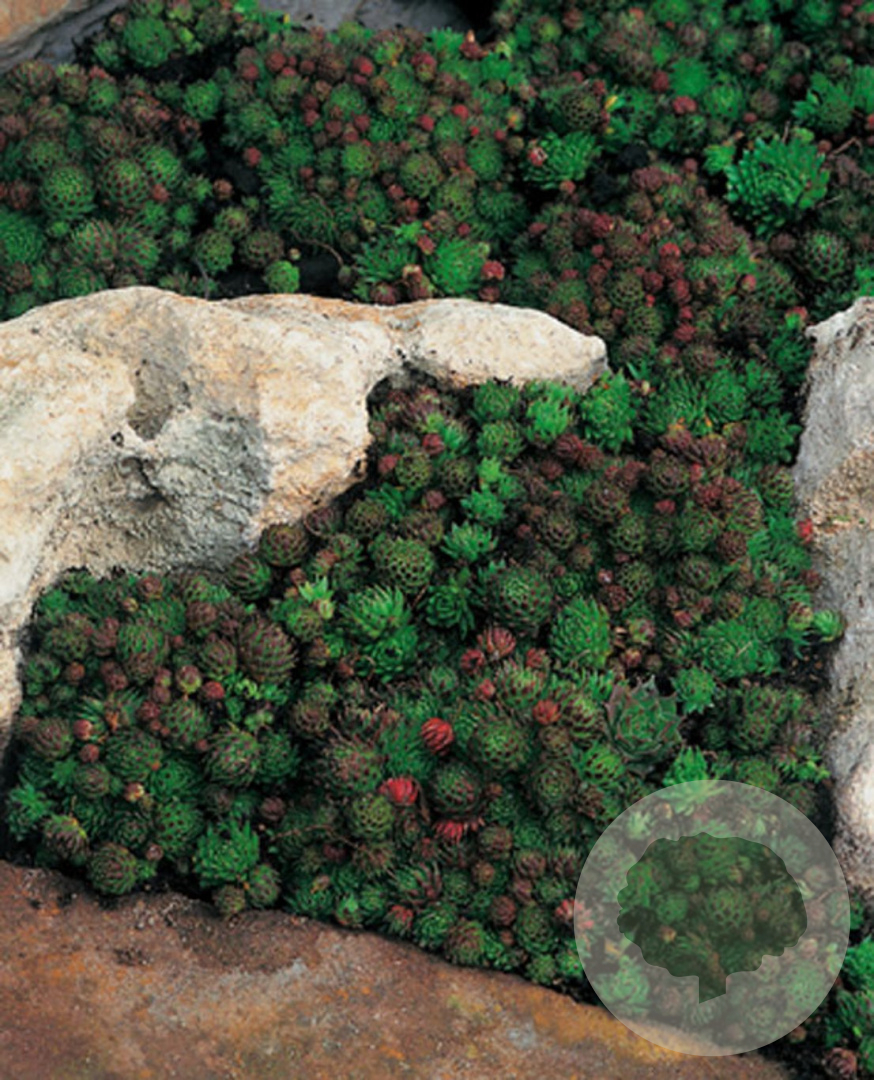 | Toelichting | Huislook (Jovibarba sob. 'Green Globe') is een laagblijvende plant met groene bladeren en gele bloemen. Deze plant bloeit in juni en juli en gedijt goed in de zon op zandgrond, klei of neutrale grond. |