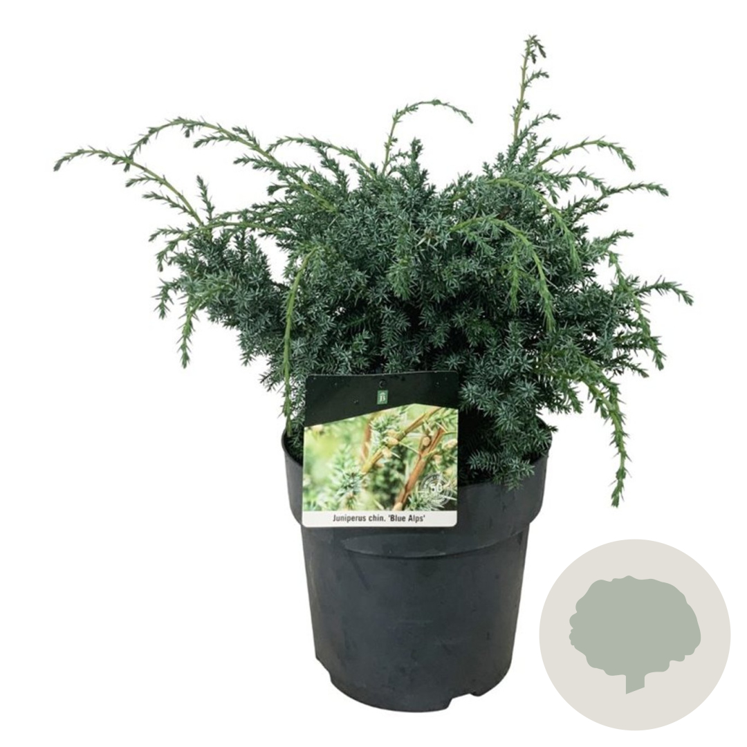 | Toelichting | De Jeneverbes 'Blue Alps' is een prachtige conifeer met blauw gekleurde naalden. Deze plant wordt ongeveer 150 cm hoog en gedijt goed in zonnige standplaatsen. Perfect voor zandgrond, klei, lichte klei, zure en kalkrijke grond. |
