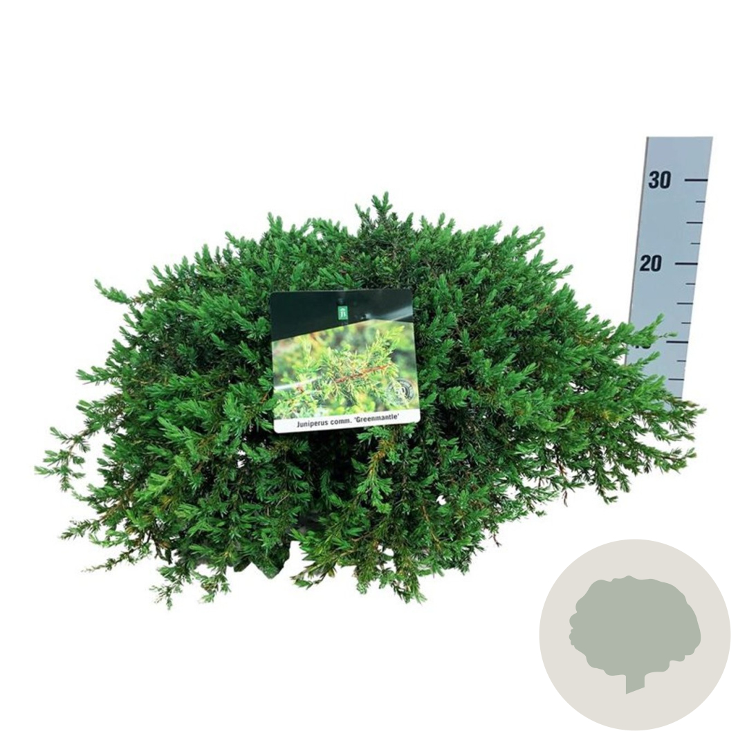 | Toelichting | De Jeneverbes (Juniperus comm. 'Greenmantle') is een groenblijvende struik met groen blad en een volwassen hoogte van 150 cm. De plant bloeit in mei-juni en gedijt goed in de zon op zandgrond, klei of neutrale grond. |