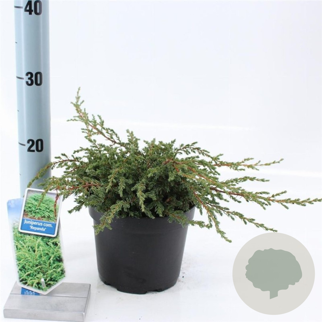 | Toelichting | De Kruipende jeneverbes (Juniperus comm. 'Repanda') is een groenblijvende bodembedekker met een volwassen hoogte van 50 cm. Deze plant gedijt goed in zowel zon als halfschaduw op zandgrond, klei of neutrale grond. Perfect voor een natuurlijke uitstraling in de tuin. |
