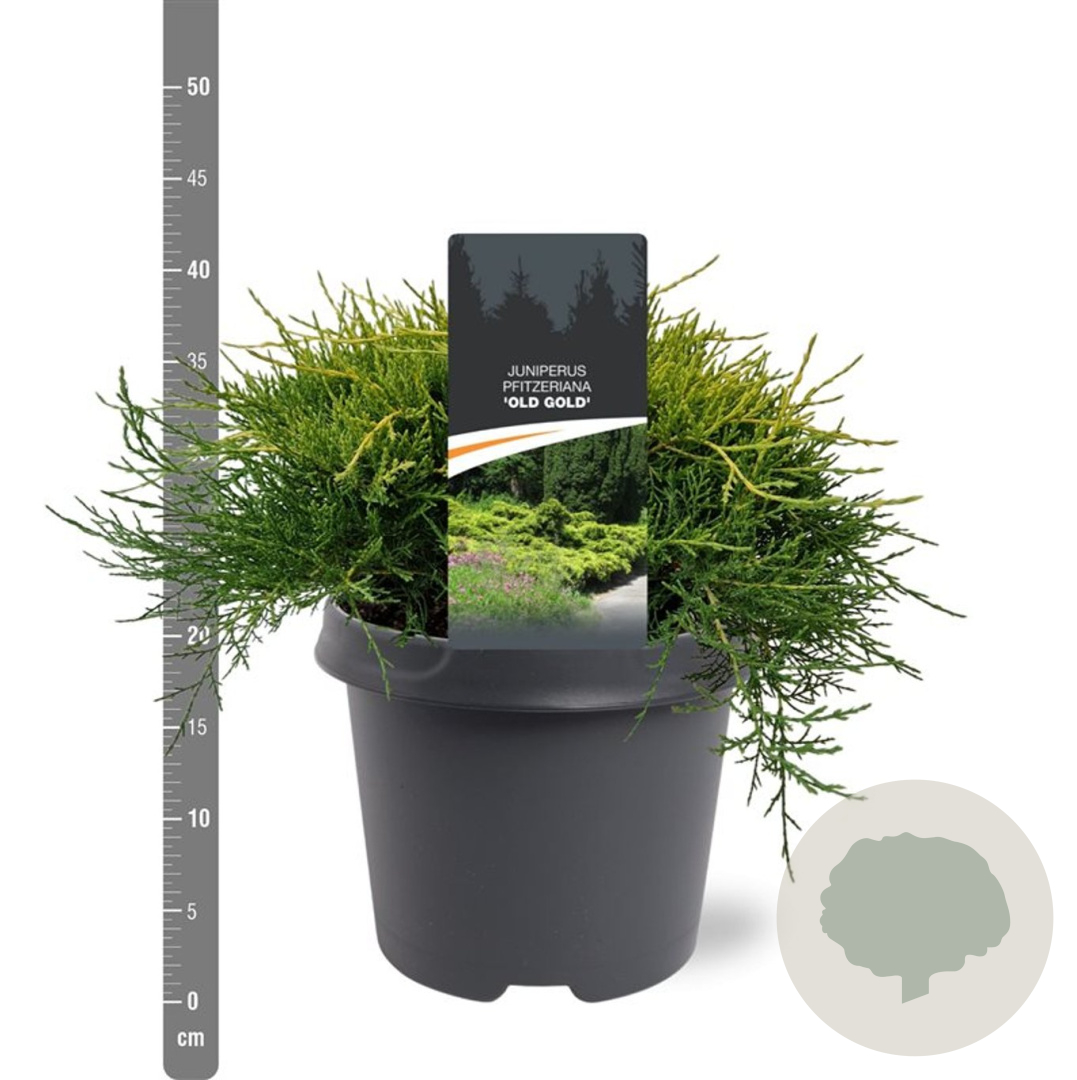 | Toelichting | De Jeneverbes 'Old Gold' is een prachtige conifeer met geelgroen blad. Deze plant wordt ongeveer 150 cm hoog en gedijt goed in zowel de zon als halfschaduw op zandgrond, klei of neutrale grond. Perfect voor een kleurrijke toevoeging aan je tuin! |