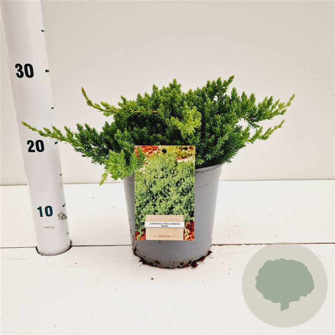 | Toelichting | De Kruipende jeneverbes (Juniperus procumbens 'Nana') is een laagblijvende groenblijvende struik met groen blad. Deze plant gedijt goed in de zon op zandgrond, klei of neutrale grond. Perfect voor rotstuinen of als bodembedekker. |