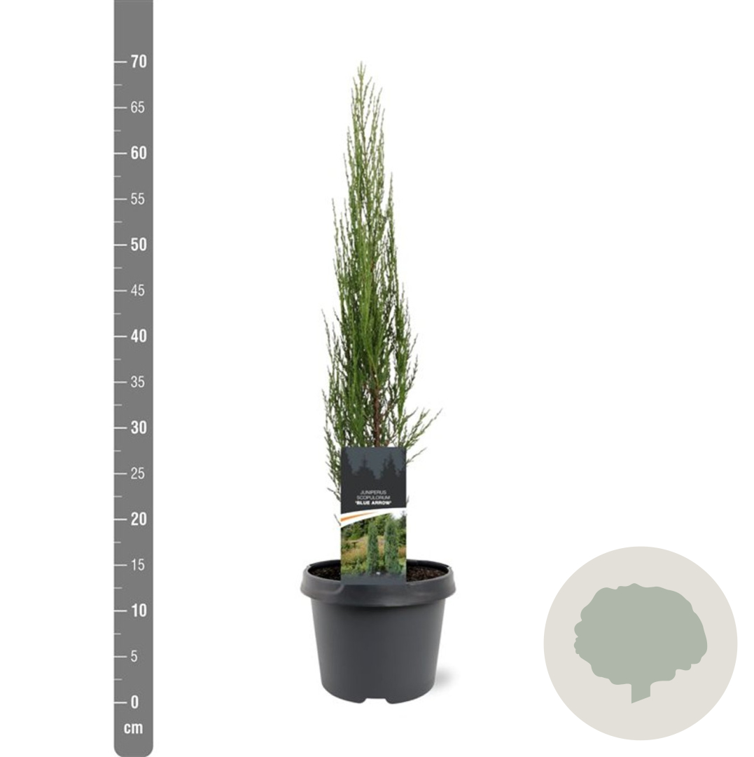 | Toelichting | De Jeneverbes 'Blue Arrow' is een prachtige conifeer met blauw naaldvormig blad. Deze jeneverbes kan een hoogte bereiken van 300 cm en gedijt goed in zonnige standplaatsen op zandgrond, lichte klei of droge zandgrond. |
