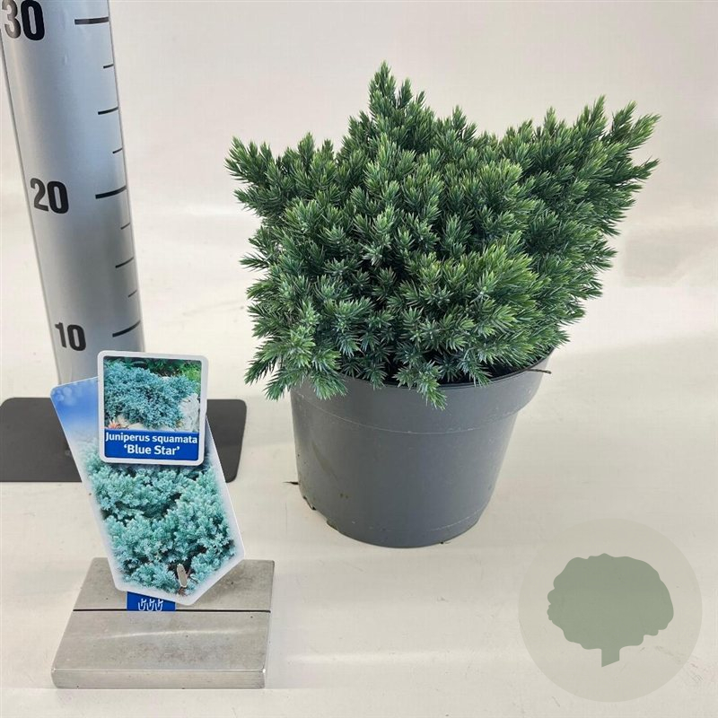 | Toelichting | De Jeneverbes 'Blue Star' is een compacte conifeer met blauw naaldvormig blad. Deze langzaam groeiende plant bereikt een hoogte van 100 cm en gedijt goed in zonnige standplaatsen op zandgrond of lichte klei. Perfect voor rotstuinen en borders. |