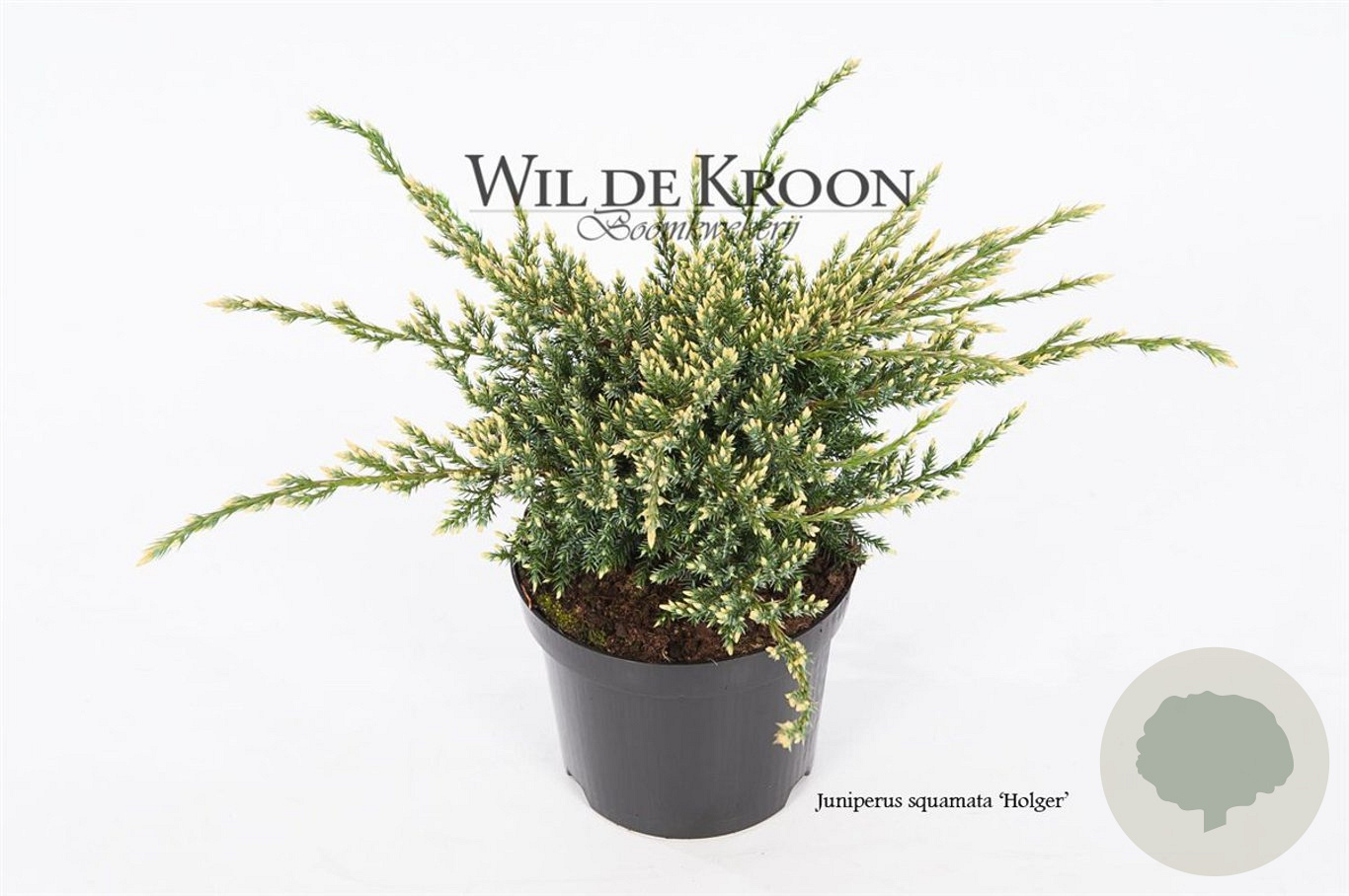 | Toelichting | De Jeneverbes (Juniperus squamata 'Holger') is een groenblijvende struik met een volwassen hoogte van 150 cm. Deze plant gedijt goed in zonnige standplaatsen en verschillende grondsoorten. De groene bladeren zorgen voor een mooie uitstraling in de tuin. |