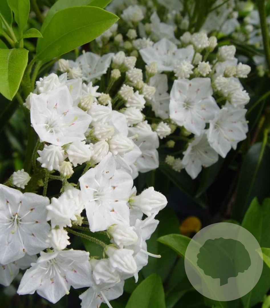 | Toelichting | De Laurierroos, ook bekend als Kalmia 'Snowdrift', is een prachtige heester met witte bloemen in de periode mei - juni. De plant gedijt goed in zon en halfschaduw op zure grond, goede tuingrond of humusrijke grond. Bereikt een hoogte van 150 cm. |