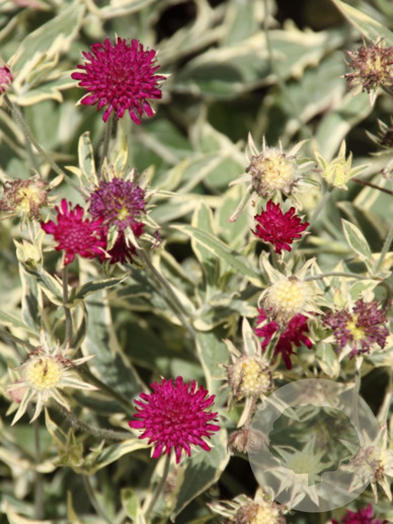| Toelichting | De Beemdkroon (Knautia m. 'Thunder and Lightning') is een prachtige vaste plant met paarse bloemen en groen/wit bont blad. Deze plant bloeit van juni tot augustus en gedijt goed in zon en halfschaduw op neutrale, goede tuingrond. Een aanwinst voor elke tuin! |