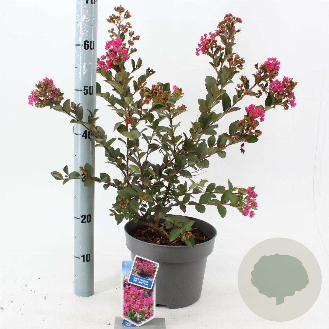 | Toelichting | Lagerstroemia, ook wel bekend als Crape Myrtle, is een prachtige sierstruik met roze bloemen en groen blad. Deze plant bloeit van juli tot september en gedijt het beste in zonnige gebieden op zand- of neutrale grond. |