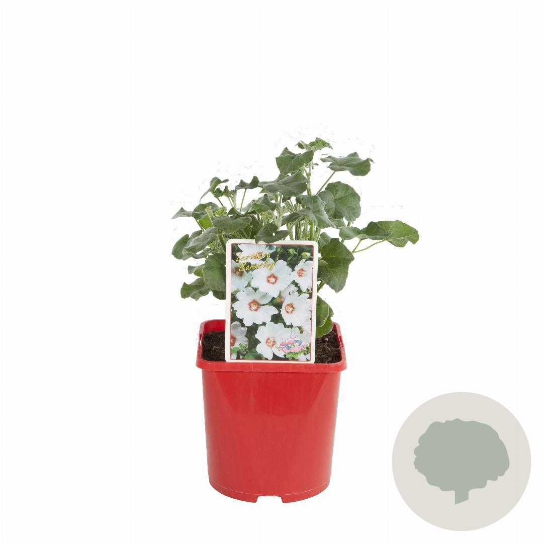 | Toelichting | Struikmalva 'Barnsley' is een prachtige vaste plant met roze bloemen die bloeien van juni tot september. Deze plant wordt ongeveer 150 cm hoog en gedijt het beste in de volle zon op lichte klei, neutrale of voedselrijke grond. |