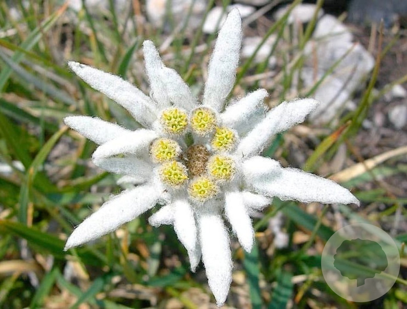 | Toelichting | De Edelweiss is een prachtige alpenplant met witte bloemen en groen blad. Bloeit van juni tot augustus en gedijt goed in zonnige standplaatsen op zand- en kalkrijke grond. |