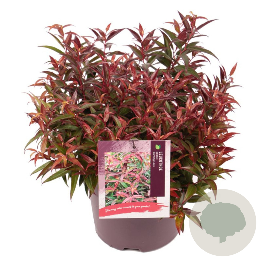 | Toelichting | Leucothoe, ook wel bekend als 'Burning Love', is een prachtige struik met groen blad en witte bloemen in de lente. Deze plant gedijt goed in de halfschaduw op zure, humusrijke grond en bereikt een hoogte van 50-100 cm. Perfect voor een kleurrijke toevoeging aan je tuin! |