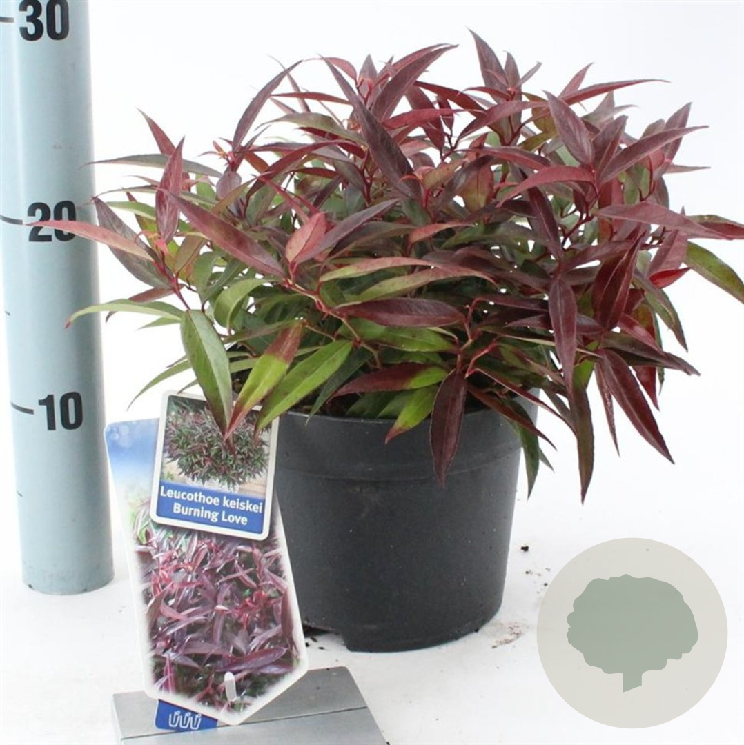 | Toelichting | Leucothoe, ook wel bekend als 'Burning Love', is een prachtige struik met groen blad en witte bloemen in de lente. Deze plant gedijt goed in de halfschaduw op zure, humusrijke grond en bereikt een hoogte van 50-100 cm. Perfect voor een kleurrijke toevoeging aan je tuin! |