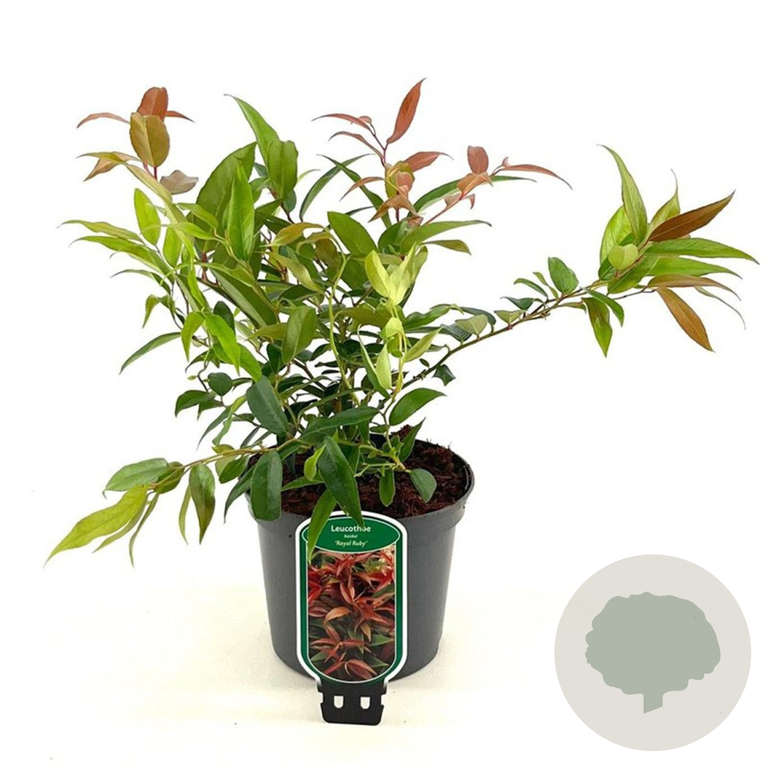| Toelichting | Druifheide, met zijn groen met bordeaux blad en witte bloemen in april-mei, gedijt goed in halfschaduw op zure, humusrijke grond. Bereikt een hoogte van 60 cm en heeft een gematigde stikstofbehoefte van 10-20g. |