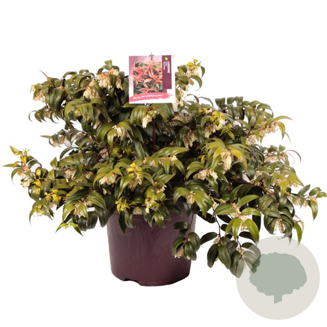 | Toelichting | Druifheide, met zijn groen met bordeaux blad en witte bloemen in april-mei, gedijt goed in halfschaduw op zure, humusrijke grond. Bereikt een hoogte van 60 cm en heeft een gematigde stikstofbehoefte van 10-20g. |