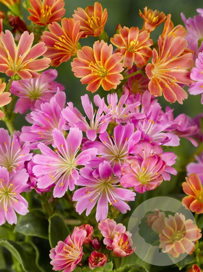 | Toelichting | Lewisia Sunset Hybrids zijn prachtige bodembedekkers met opvallende bloemen in de kleuren roze, oranje en geel. Ze bloeien van mei tot juli en gedijen goed in zonnige tot halfschaduwrijke plekken op zandgrond, lichte klei of neutrale grond. |