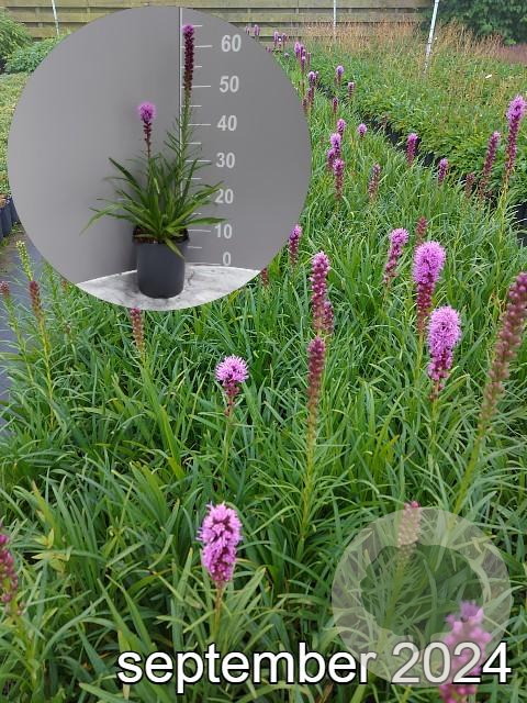 | Toelichting | De Prachtkaars (Liatris spicata 'Kobold') is een prachtige vaste plant met paarse bloemen die bloeit van juli tot september. Deze plant wordt ongeveer 60 cm hoog en gedijt het beste in de volle zon op neutrale, goede tuingrond. Perfect voor een kleurrijke zomertuin! |