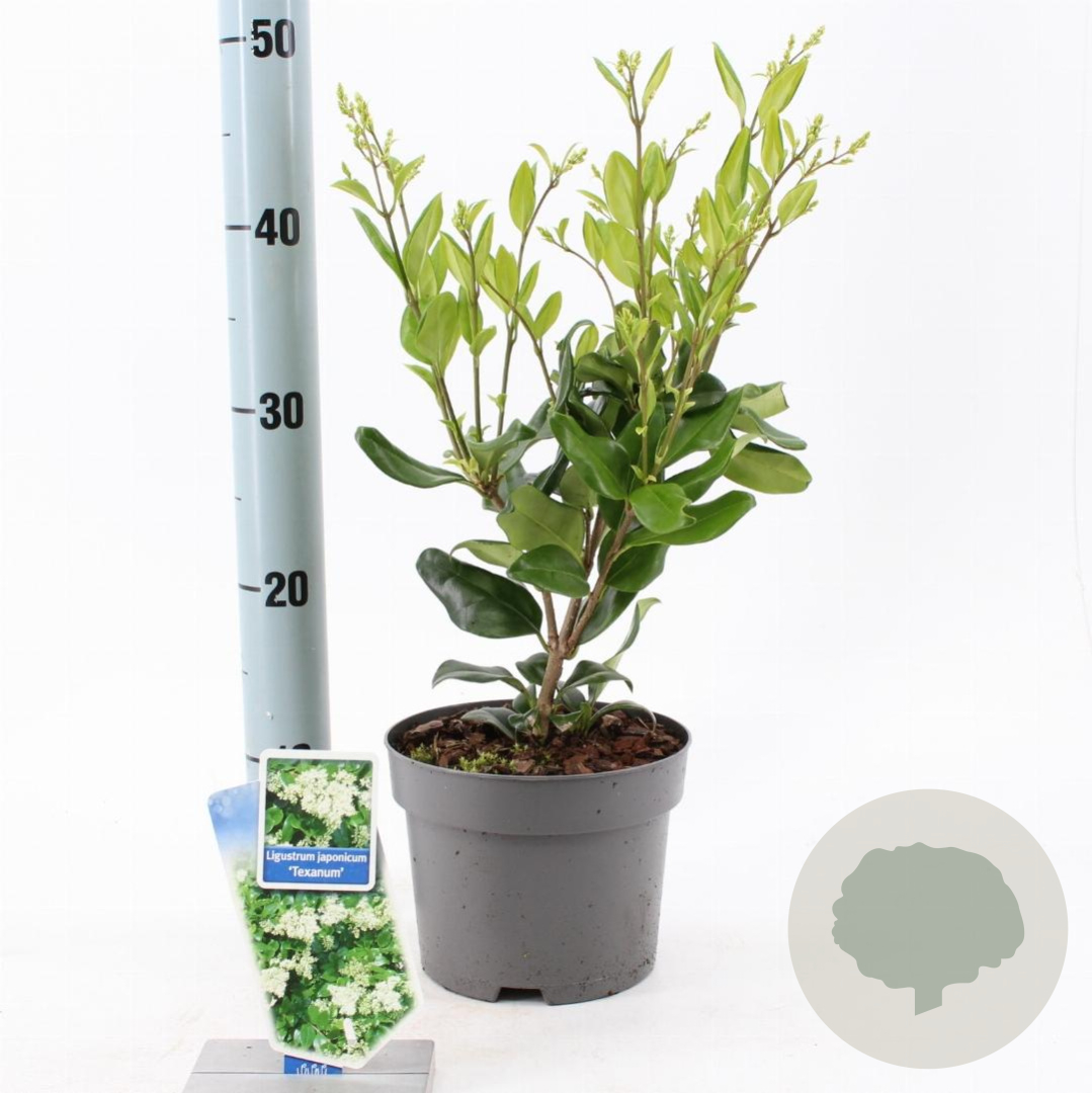 | Toelichting | De Liguster 'Texanum' is een mooie haagplant met witte bloemen en groen blad. Hij bloeit in juni en juli en gedijt goed in zon en halfschaduw op neutrale, goede tuingrond met humus. |