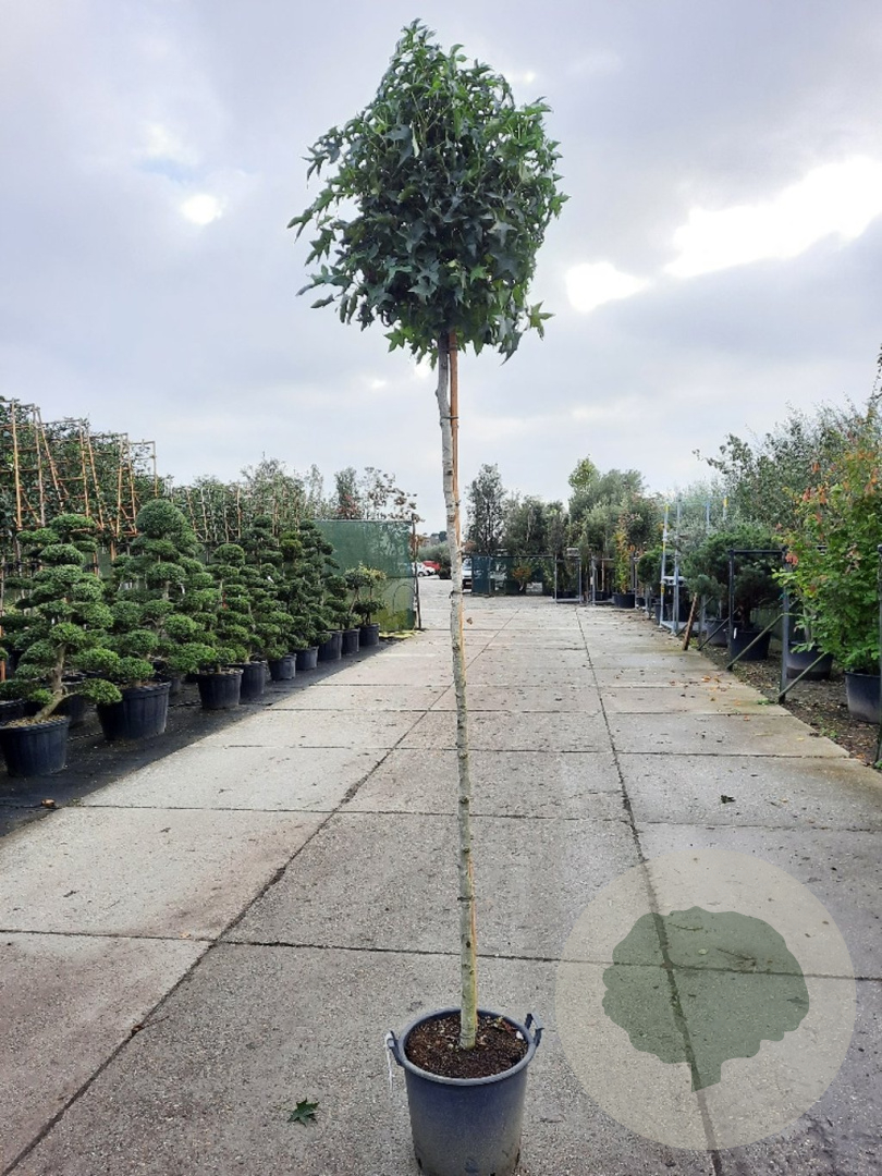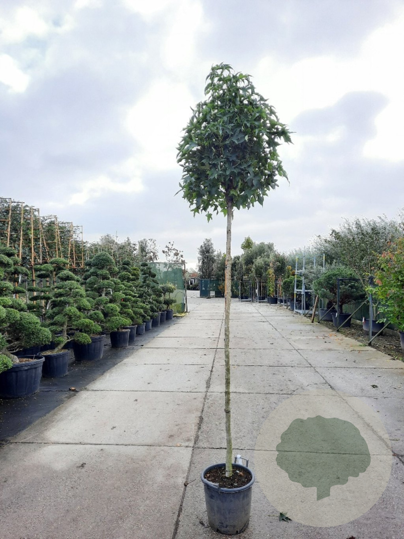 | Toelichting | De Amberboom 'Gum Ball' is een compacte sierboom met groen blad en groene bloemen in mei - juni. Hij wordt ongeveer 150 cm hoog en gedijt goed in zon en halfschaduw op zandgrond, lichte klei of neutrale grond. |