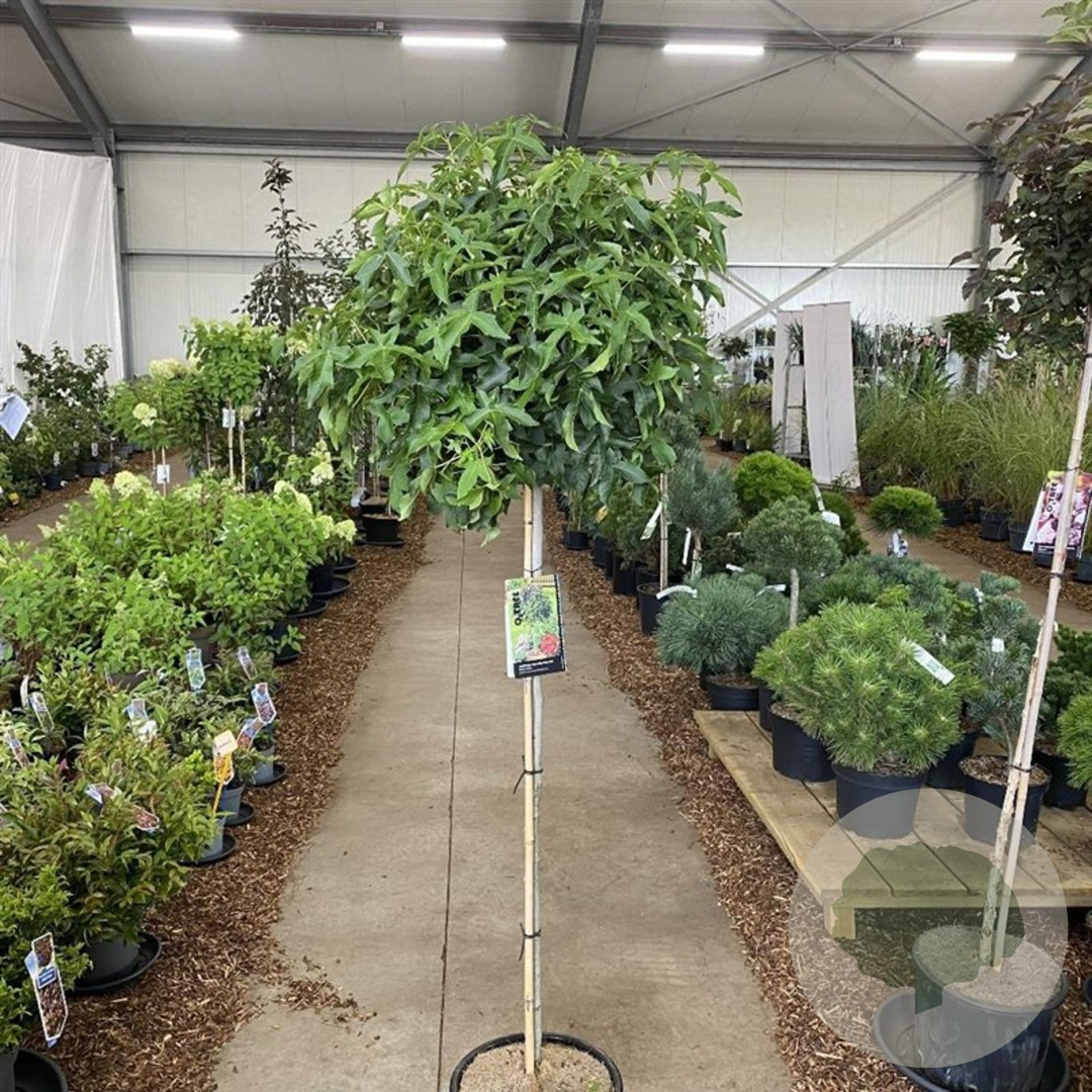 | Toelichting | De Amberboom 'Gum Ball' is een compacte sierboom met groen blad en groene bloemen in mei - juni. Hij wordt ongeveer 150 cm hoog en gedijt goed in zon en halfschaduw op zandgrond, lichte klei of neutrale grond. |