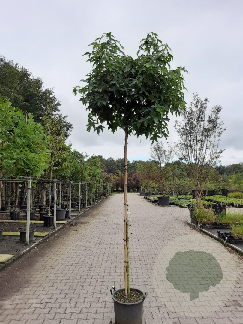 | Toelichting | De Amberboom 'Gum Ball' is een compacte sierboom met groen blad en groene bloemen in mei - juni. Hij wordt ongeveer 150 cm hoog en gedijt goed in zon en halfschaduw op zandgrond, lichte klei of neutrale grond. |