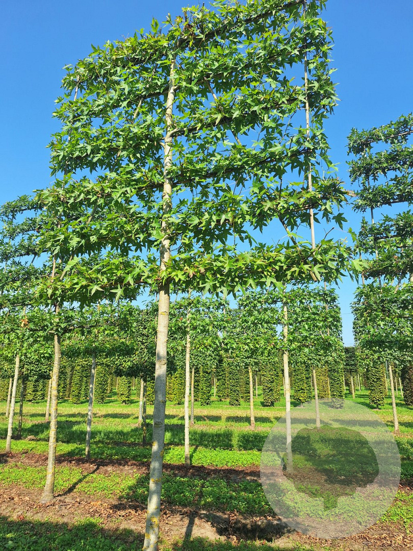 Liquidambar s. 'Worplesdon' 25-30 cm draadkluit 225 cm stam 6 etages leivorm