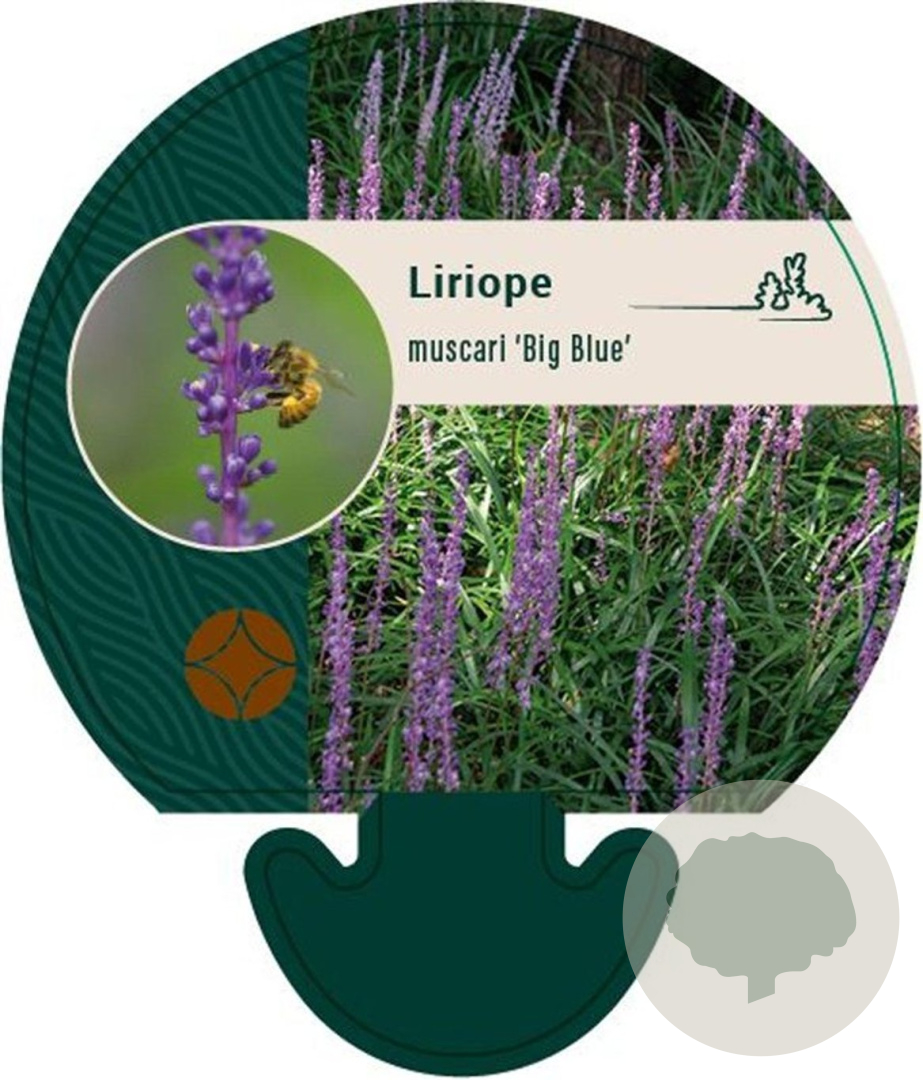Toelichting | Leliegras (Liriope muscari 'Big Blue') is een prachtige bodembedekker met paarse bloemen en groen blad. Deze plant bloeit in augustus en september en gedijt goed in zon en halfschaduw op lichte klei, neutrale of humusrijke grond. |