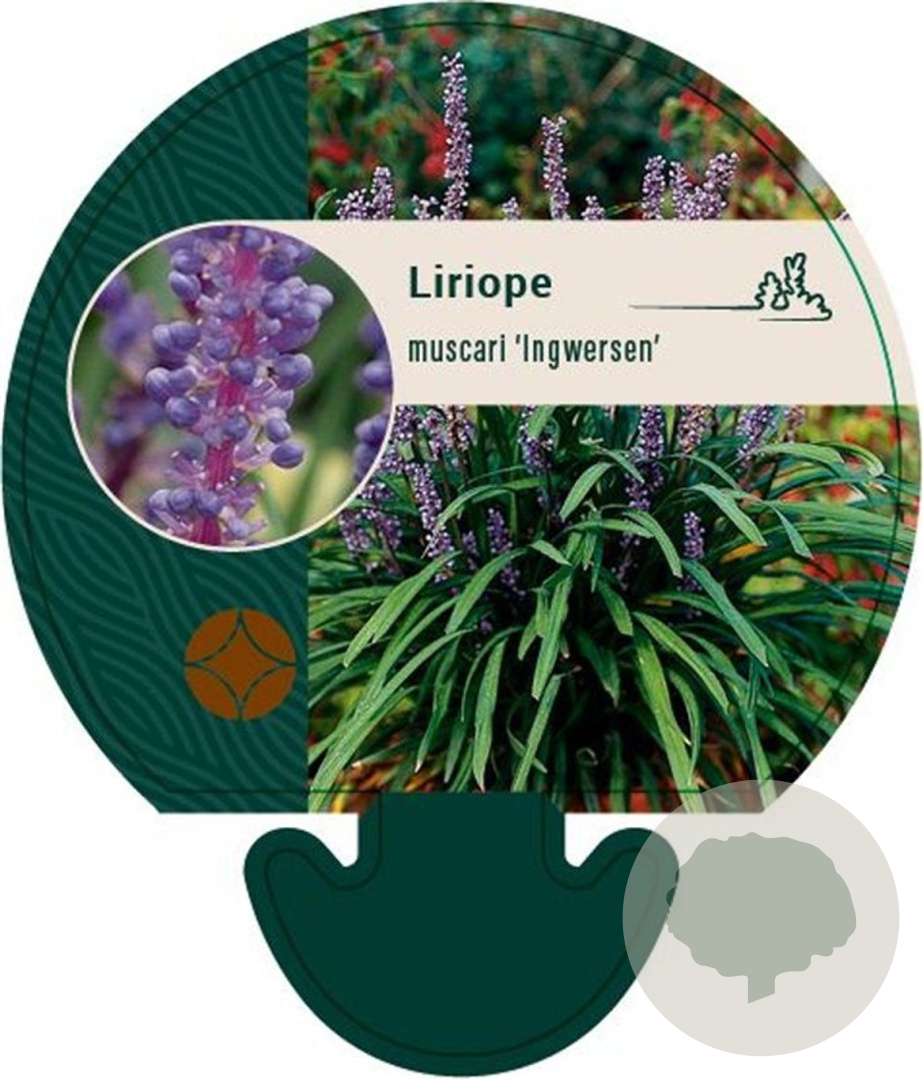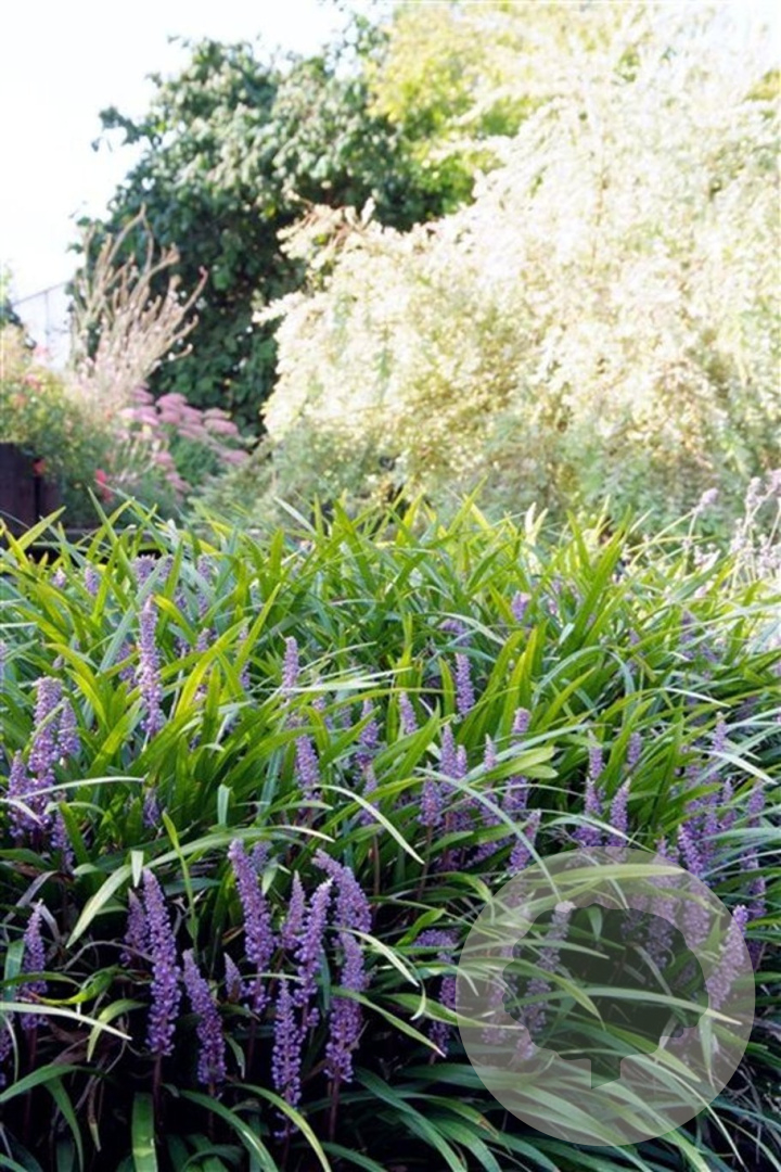 Toelichting | Leliegras (Liriope muscari 'Ingwersen') is een prachtige bodembedekker met paarse bloemen en groen blad. Deze plant bloeit in augustus en september en gedijt goed in de halfschaduw op neutrale en voedselrijke grond. De volwassen hoogte is ongeveer 30 cm. |