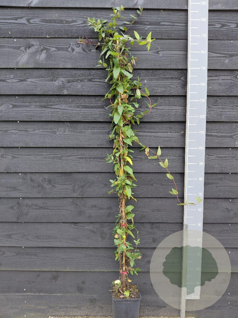 | Toelichting | De Kamperfoelie (Lonicera jap. 'Red World') is een prachtige klimplant met rode bloemen die bloeien van mei tot september. Deze plant gedijt goed in zon en halfschaduw op lichte klei, neutrale of humusrijke grond. Bereikt een hoogte van 200 cm. |
