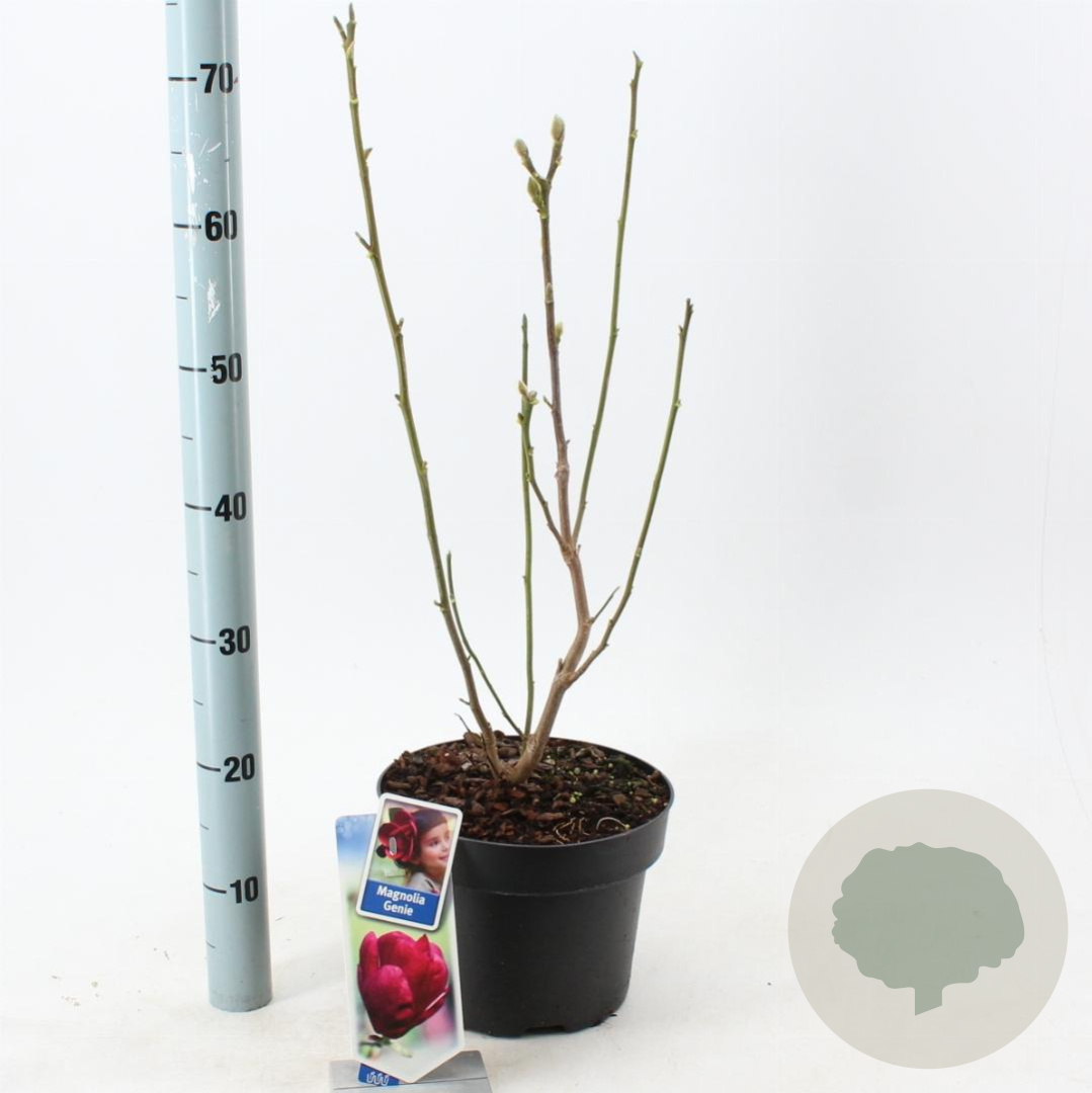 | Toelichting | De Beverboom (Magnolia 'Genie') is een prachtige heester met donkerpaarse bloemen in april en mei. Deze niet-inheemse plant gedijt het beste in zon en halfschaduw op zandgrond, neutrale grond of goede tuingrond. Bereikt een volwassen hoogte van 200 cm. |