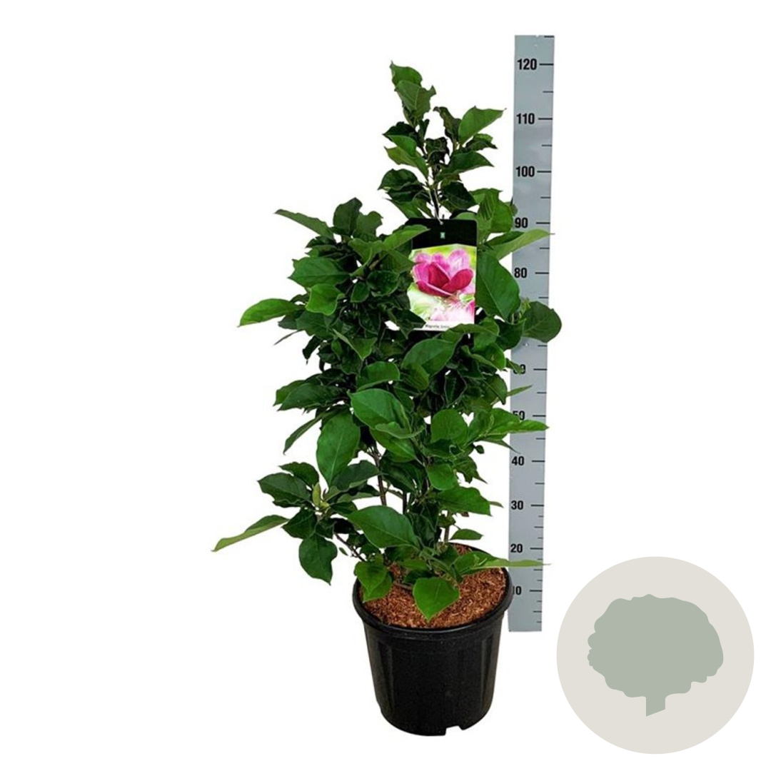 | Toelichting | De Beverboom (Magnolia 'Genie') is een prachtige heester met donkerpaarse bloemen in april en mei. Deze niet-inheemse plant gedijt het beste in zon en halfschaduw op zandgrond, neutrale grond of goede tuingrond. Bereikt een volwassen hoogte van 200 cm. |