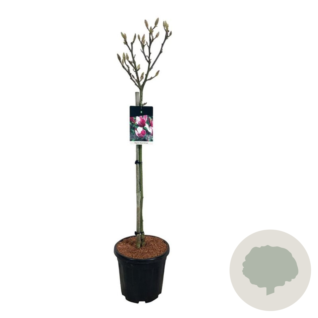 | Toelichting | De Beverboom (Magnolia soul. 'Satisfaction') is een prachtige sierstruik met donkerrode bloemen in april en mei. De groene bladeren en compacte groei maken het een ideale aanvulling voor zonnige tot halfschaduwrijke tuinen op neutrale, goed doorlatende grond. |