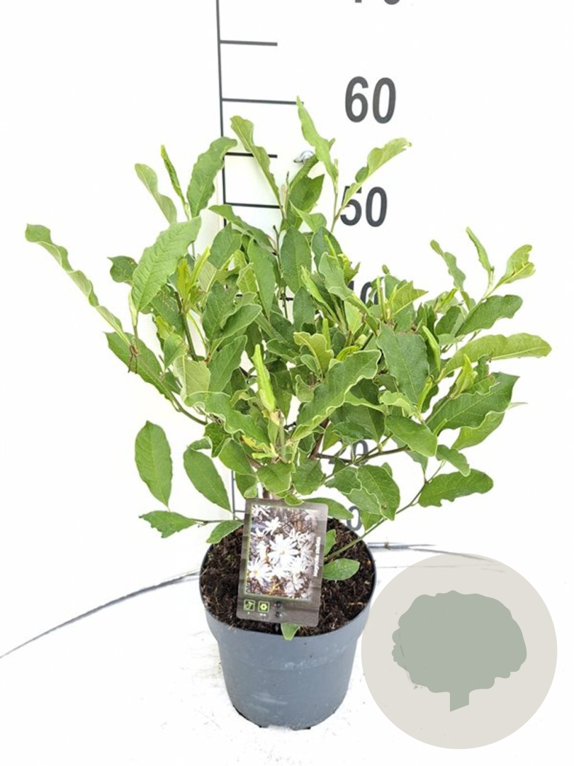 | Toelichting | De Stermagnolia is een prachtige struik met witte bloemen die in april en mei bloeien. De plant wordt ongeveer 200 cm hoog en gedijt goed in zonnige tot halfschaduwrijke plekken op zandgrond, lichte klei of neutrale grond. |