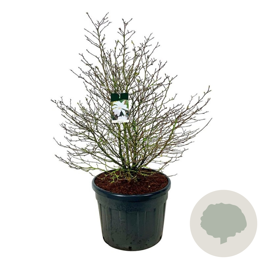 | Toelichting | De Stermagnolia is een prachtige struik met witte bloemen die in april en mei bloeien. De plant wordt ongeveer 200 cm hoog en gedijt goed in zonnige tot halfschaduwrijke plekken op zandgrond, lichte klei of neutrale grond. |
