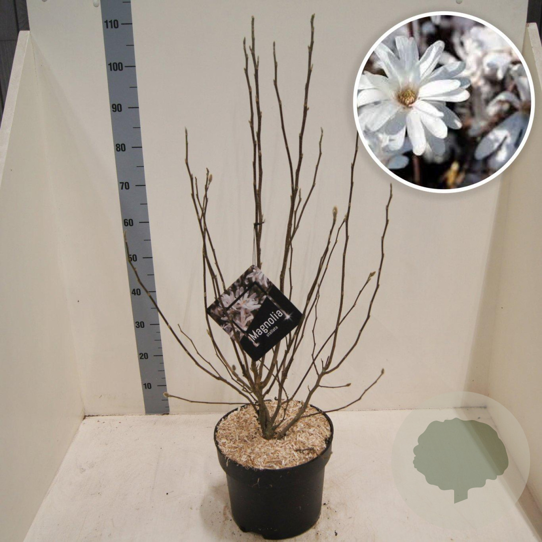 | Toelichting | De Stermagnolia is een prachtige struik met witte bloemen die in april en mei bloeien. De plant wordt ongeveer 200 cm hoog en gedijt goed in zonnige tot halfschaduwrijke plekken op zandgrond, lichte klei of neutrale grond. |