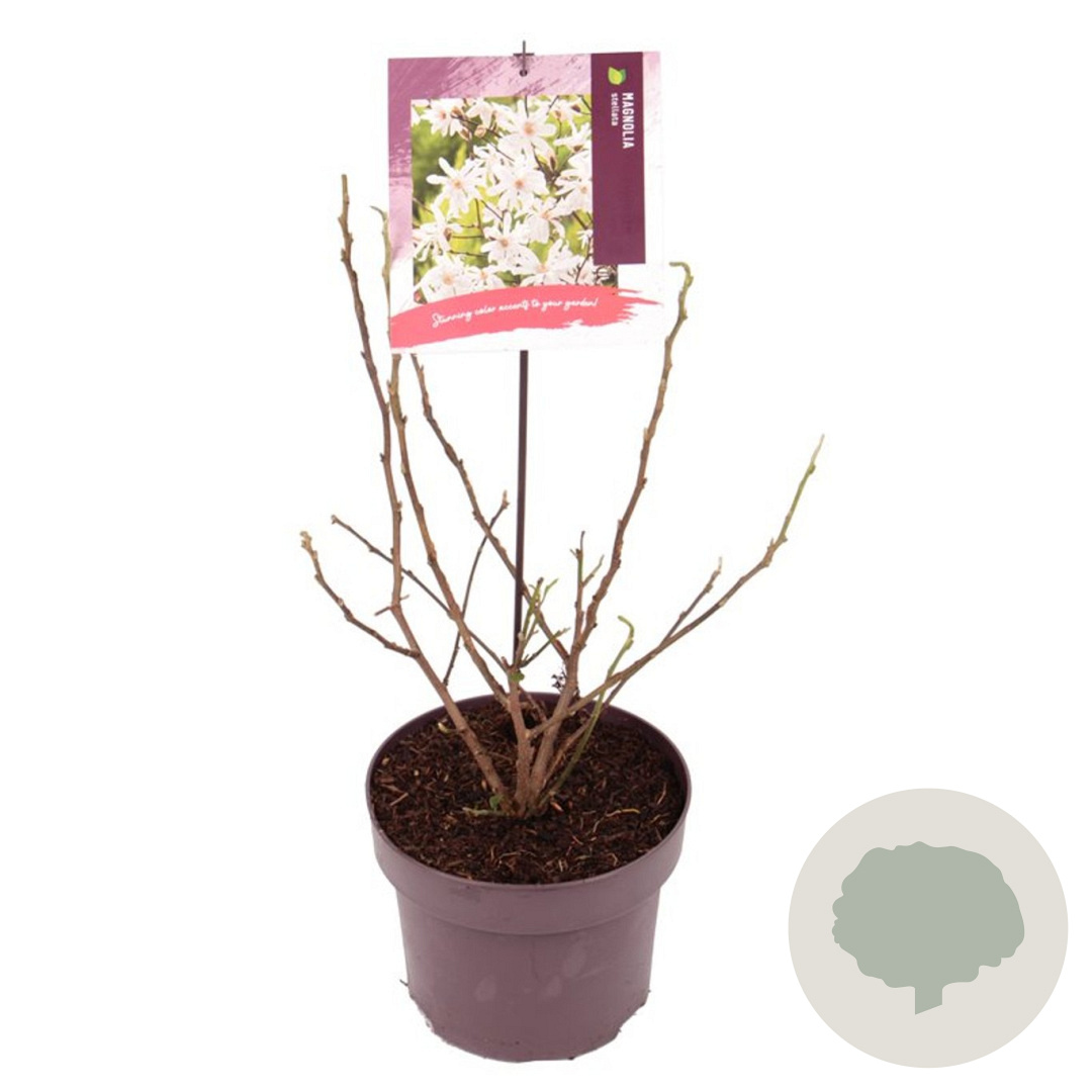 | Toelichting | De Stermagnolia is een prachtige struik met witte bloemen die in april en mei bloeien. De plant wordt ongeveer 200 cm hoog en gedijt goed in zonnige tot halfschaduwrijke plekken op zandgrond, lichte klei of neutrale grond. |