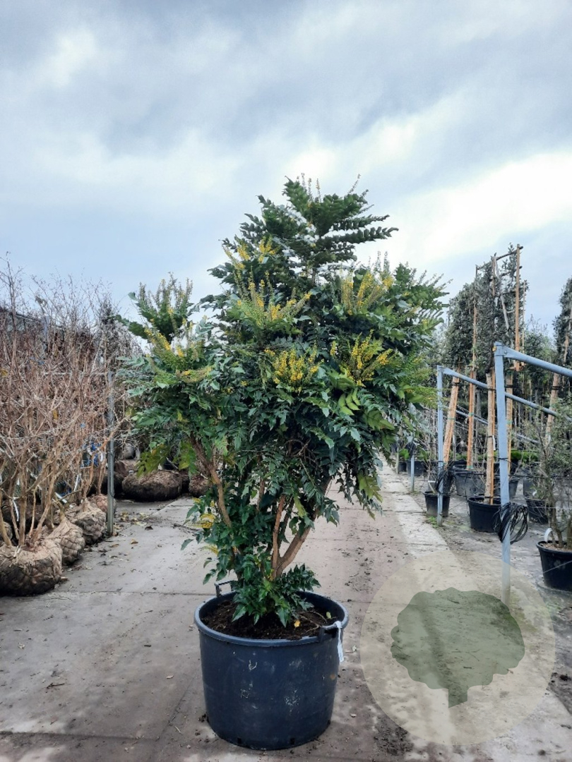 | Toelichting | Mahoniestruik, ook bekend als Mahonia media 'Charity', is een prachtige struik met donkergroen blad en geurende gele bloemen in de vroege lente. Deze struik gedijt het beste in halfschaduw op zure, humusrijke grond. |