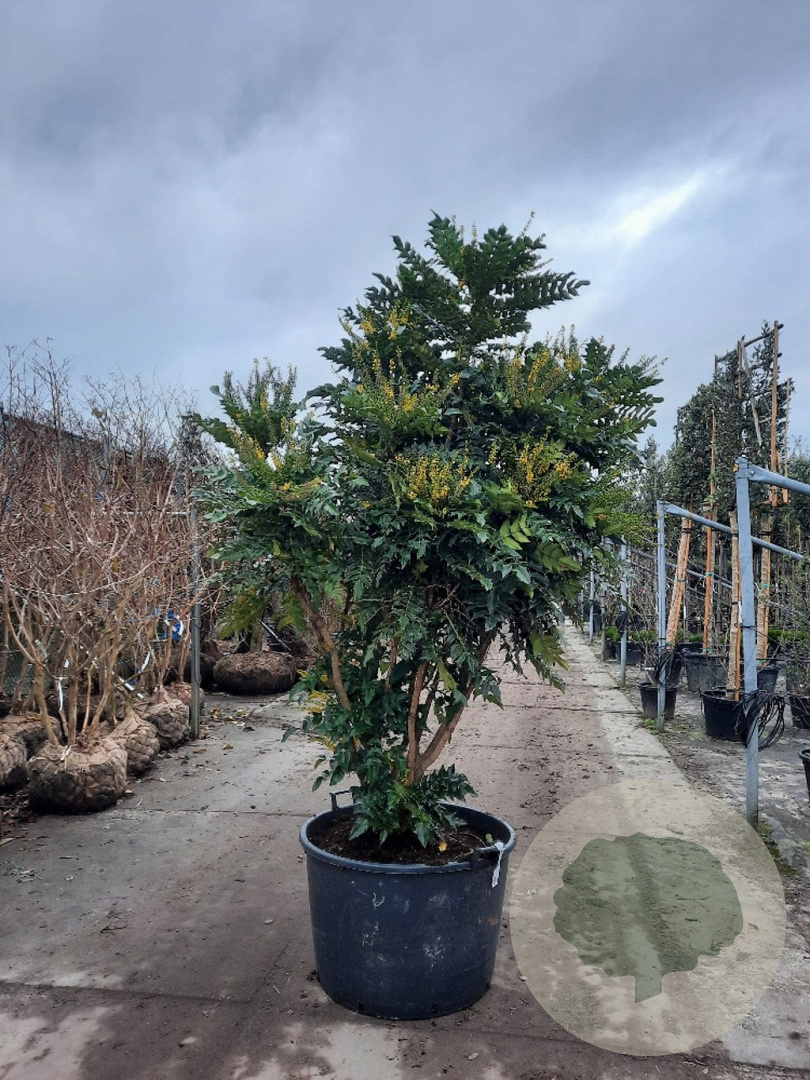 | Toelichting | Mahoniestruik, ook bekend als Mahonia media 'Charity', is een prachtige struik met donkergroen blad en geurende gele bloemen in de vroege lente. Deze struik gedijt het beste in halfschaduw op zure, humusrijke grond. |