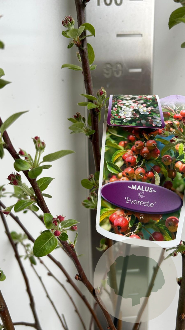 | Toelichting | De Malus 'Evereste', ook wel bekend als Sierappel 'Evereste', is een prachtige sierappelboom met witroze bloemen in april en mei. Het groene blad en de compacte groei maken deze boom ideaal voor zowel zonnige als halfschaduwrijke plekken in de tuin. Perfect voor neutrale, voedselrijke grond. |