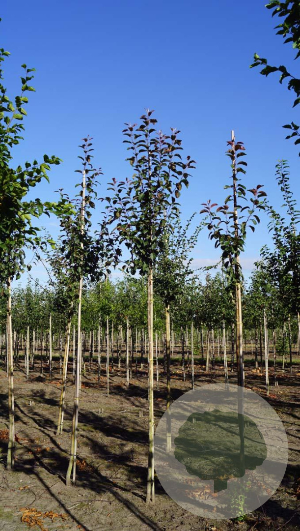Malus 'Mokum' (sierappel 'Mokum') – hoogstam 10-12 cm, containergekweekt. Bloesemboom met roodpaarse bloemen, kleurrijk blad en sierappeltjes tot in de winter.