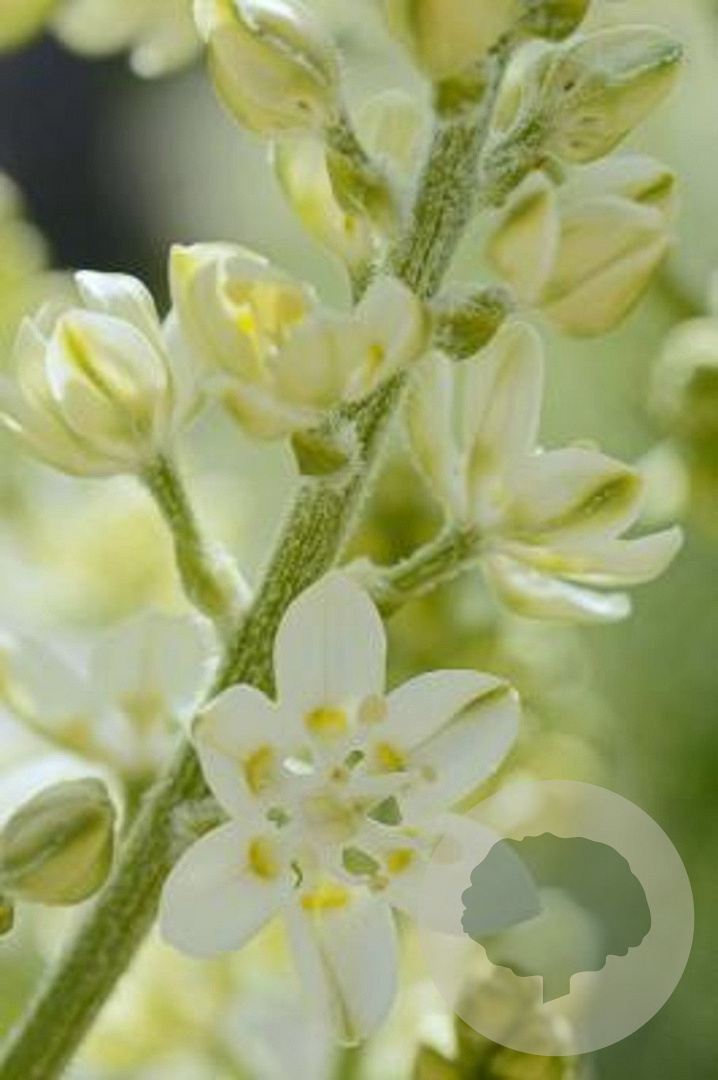 | Toelichting | Melanthium, met witte bloemen en groen blad, bloeit van juni tot juli en bereikt een hoogte van 100 cm. Deze plant gedijt goed in zonnige tot halfschaduwrijke omgevingen met zand- of neutrale grond. |