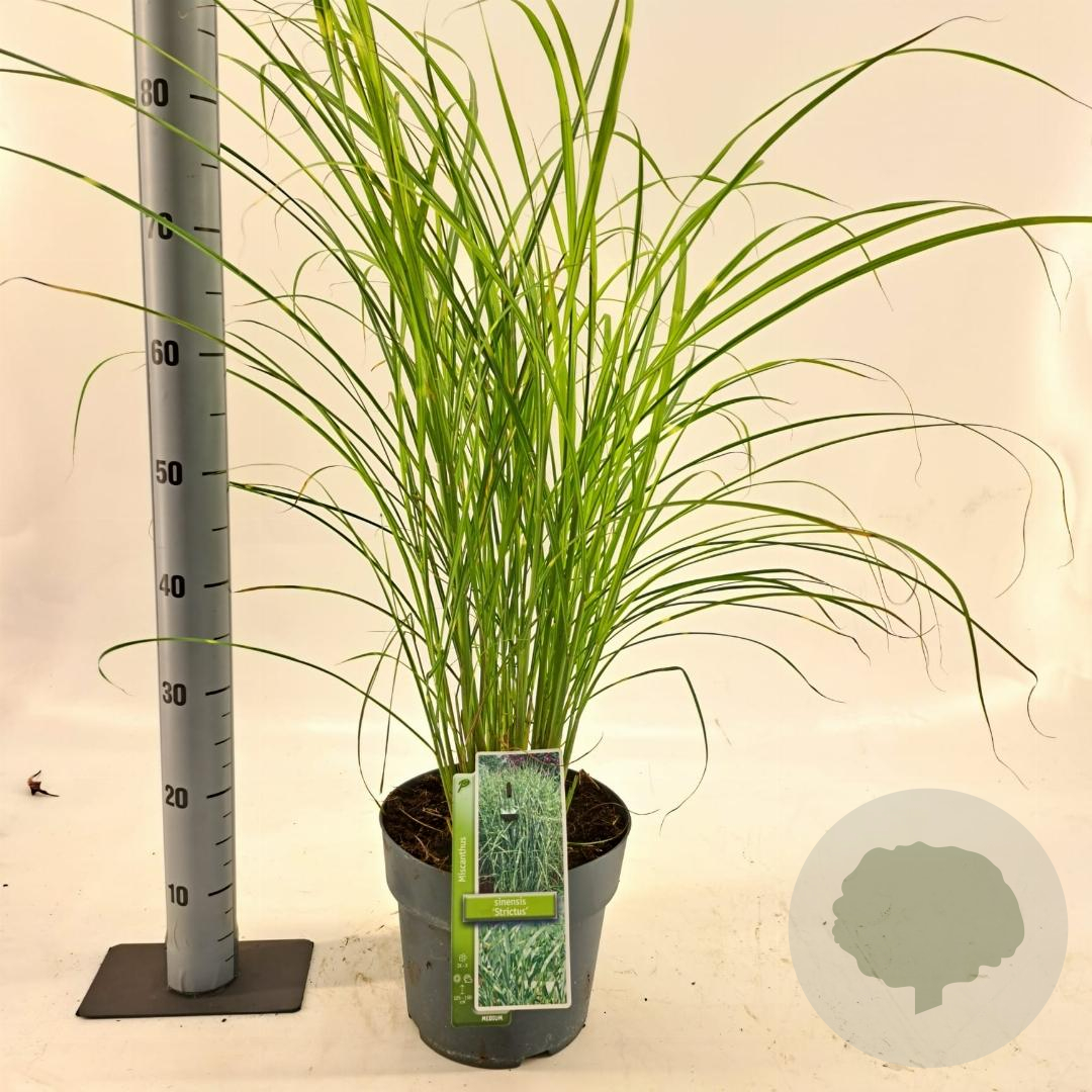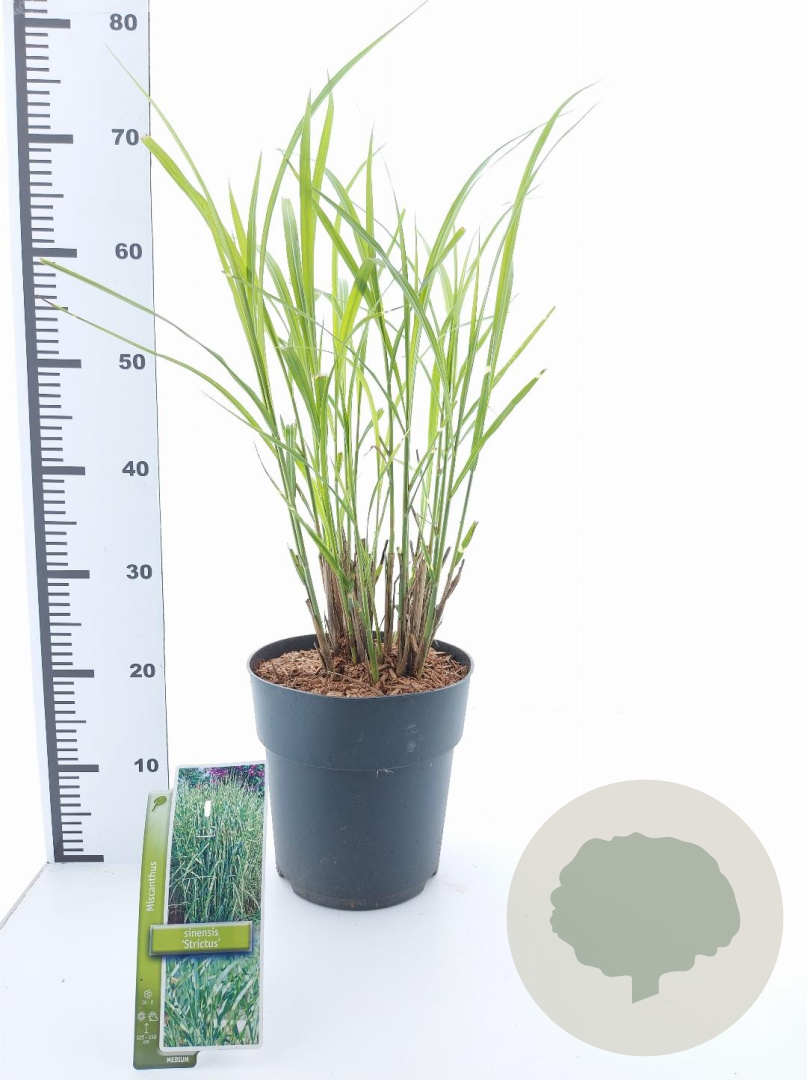 | Toelichting | Het Prachtriet (Miscanthus sinensis 'Strictus') is een siergras met opvallende groene bladeren met gele strepen. In de late zomer bloeit het met pluimen in de kleuren geel en groen. Perfect voor een zonnige standplaats in neutrale, voedselrijke grond. |
