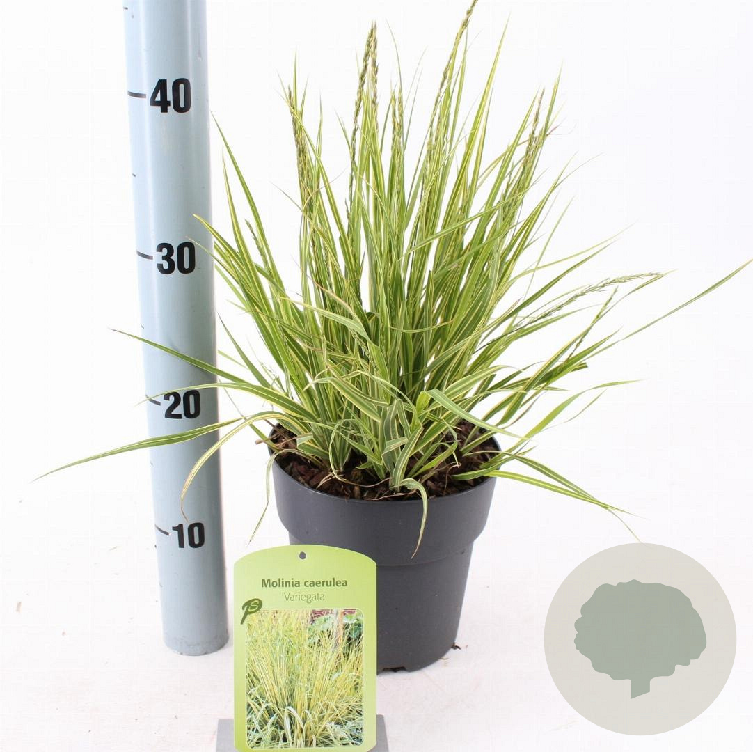 | Toelichting | Pijpenstrootje (Molinia caerulea 'Variegata') is een siergras met groen/crème gestreept blad en gele bloemen. Het bloeit van juli tot september en gedijt goed in zon en halfschaduw op zand- of neutrale grond. Ideaal voor een voedselrijke tuin! |