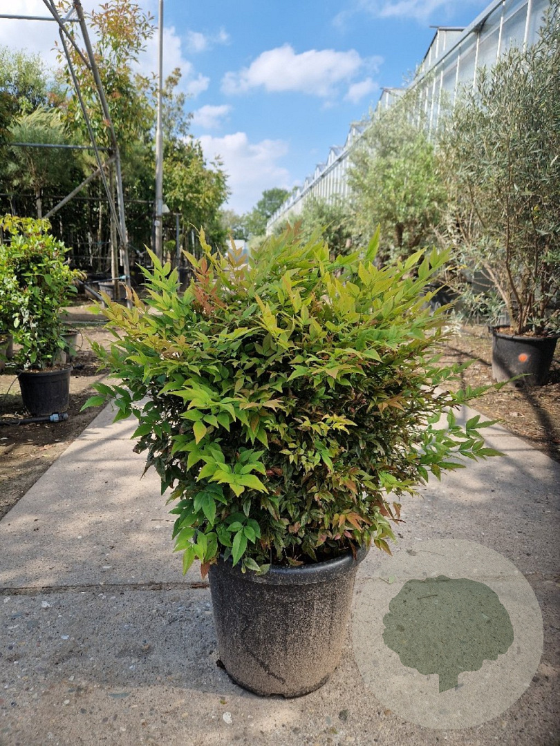 | Toelichting | De Hemelse bamboe (Nandina d. 'Gulf Stream') is een compacte struik met groen blad en witte bloemen in juni - juli. Deze plant gedijt goed in zon en halfschaduw op zandgrond, lichte klei of neutrale grond. Bereikt een hoogte van 60 - 90 cm. |