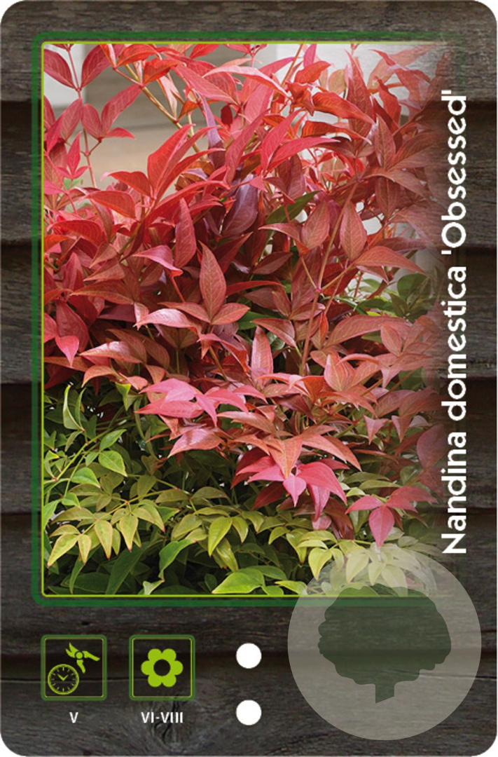 | Toelichting | De Hemelse bamboe Obsessed is een compacte struik met groen blad en witte bloemen in juni en juli. Perfect voor zonnige tot halfschaduwrijke plekken in de tuin met zandgrond, lichte klei of neutrale grond. |